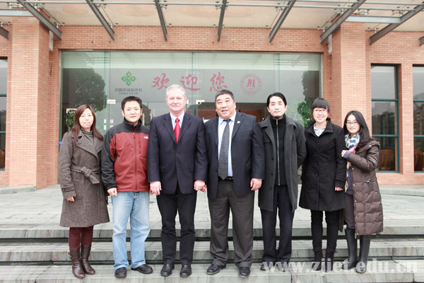2012年2月22日,德国汉莎航空企业培训高级项目经理Holger Berg,浙江省对外服务公司国际教育培训中心刘俊总经理等一行三人来我校参观访问并会谈,院长李曙明和外事办、工商系等部门负责人热情接待了来宾。
