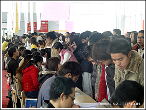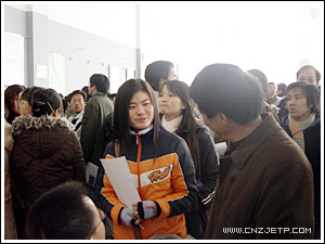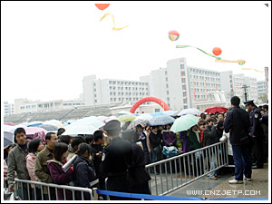 12月11日,由省教育厅主办、下沙高教园区六所高职院校联合承办的浙江省2006届高校毕业生高职类专场招聘会在我院举行。此次招聘会是浙江省教育厅首次组织的高职类毕业生专场大型招聘会,参会单位有三百余家,其中不乏有浙江农资集团、浙江新大集团、杭州制氧集团、松下集团、杭州汽轮机集团、杭州宋城集团等一些知名企业。据不完全统计,此次参会单位带来了2000多个岗位。尽管天下着小雨并吹着冷飕飕的风,但这丝毫不减求职大军们火一样的热情,在杭高职院校及湖州、台州、温州等省内外的高职院校约1.5万名毕业生人前来应聘,不少本科院校和省外的毕业生也闻讯纷纷赶来应聘,约1000名毕业生与用人单位达成了初步意向。省教育工委副书记、教育厅副厅长蒋胜祥及教育厅学生处处长周加敏等领导亲临招聘会现场指导。浙江卫视、《浙江日报》、《钱江晚报》、《浙江教育信息报》等多家知名媒体对本次招聘会进行专门报道。