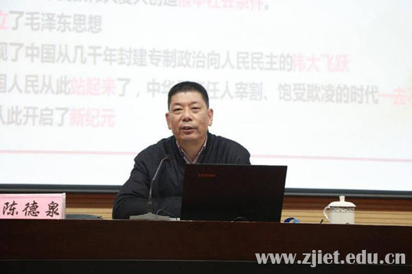 在全省上下深入学习贯彻党的十九届六中全会精神和浙江省委十四届十次全会精神之际,12月14日下午,校长陈德泉赴联系学院开展题为《从党的百年奋斗历程中汲取智慧和力量——深入学习贯彻党的十九届六中全会精神》主题宣讲,国际贸易学院、应用工程学院、机关第二党总支第二党支部全体教师和部分学生党员、入党积极分子参加宣讲会,大会设主会场1处、分会场3处。