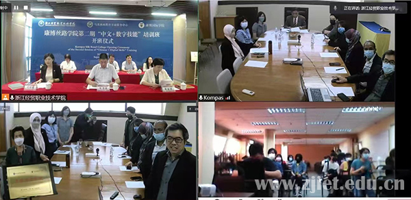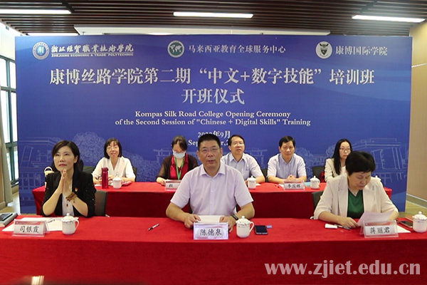 9月14日,学校与马来西亚康博国际学院共同举办的第2期“中文+数字技能”培训项目以视频会议的形式顺利开班。学校校长陈德泉、副校长蒋丽君,康博国际学院校长阿末占利,深斋教育集团资源总监何学雄,以及两校相关部门负责人出席仪式。会议由学校副校长蒋丽君主持。