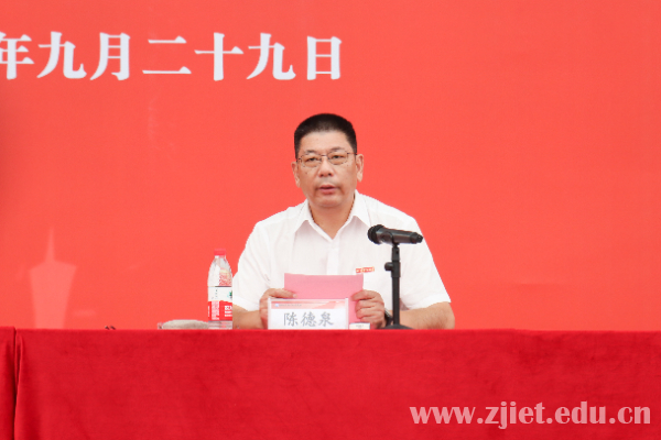 陈德泉在讲话中代表学校向94973部队对本次军训的精心指导表示由衷的感谢,对本次军训付出辛勤汗水的教官致以崇高的敬意,对新生们在军训中取得的优异成绩表示热烈的祝贺。并向全体新生提出三点希望:希望同学们志存高远,锤炼意志,擦亮青春底色;希望同学们自觉自律,强健体魄,打好健康底子;希望同学们善于学习,知行合一,增添技能底气,争做新时代经贸新青年!